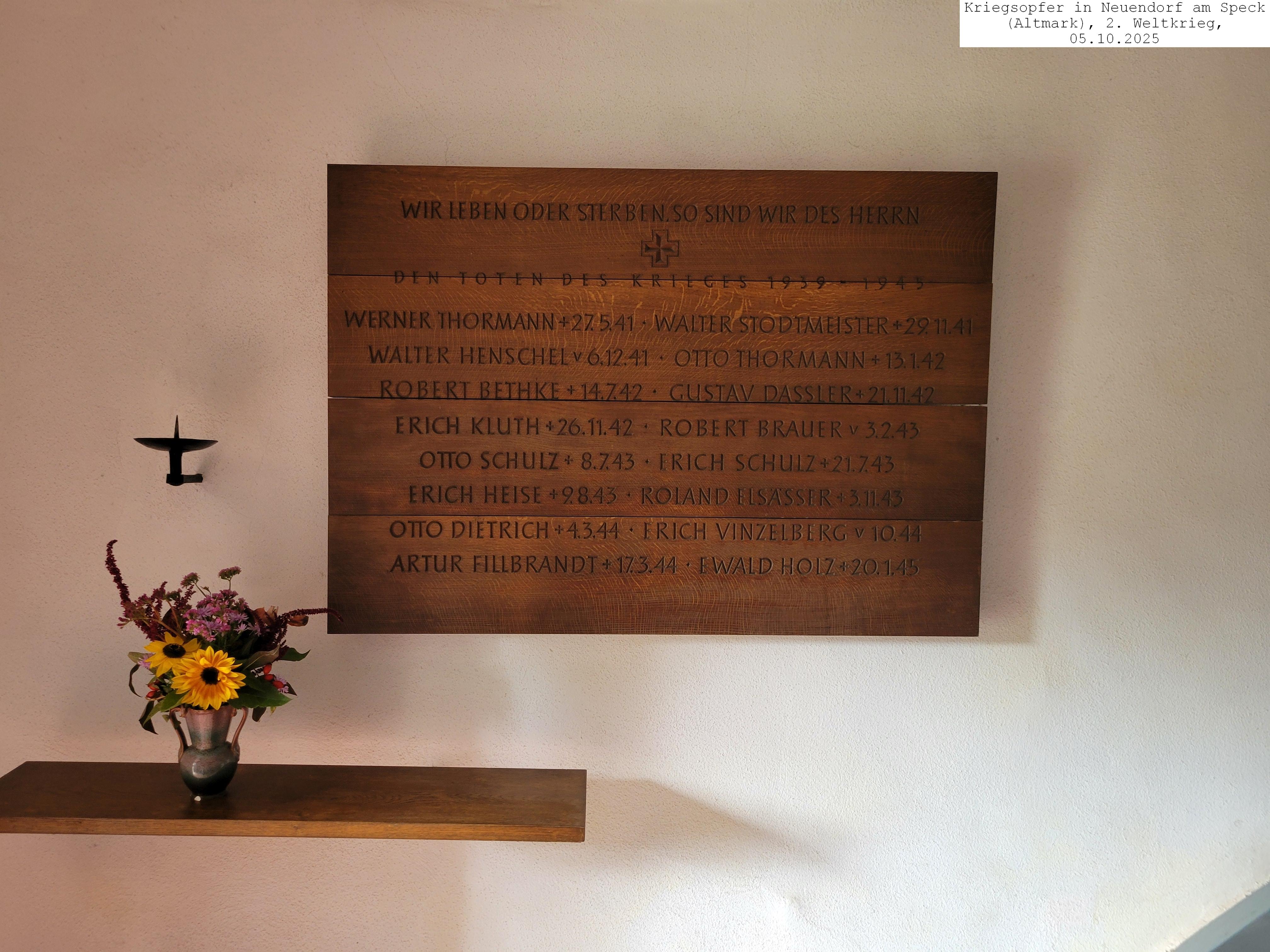 ![]() Fotograf/in: Peter Leymann, 2023 | Ort | Altgarz (Ortsteil von Großderschau) Gefallene 2. Weltkrieg auf Gedenktafeln in Großderschau |