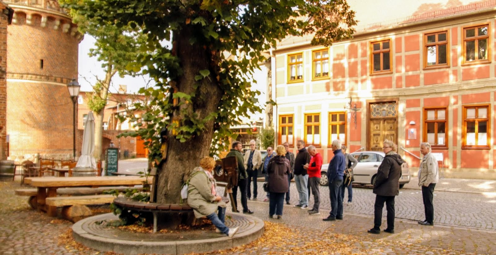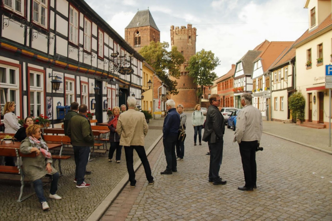 Alle Bilder: Peter Leymann | 20 Mitglieder der BGG Roter Adler und Interessierte trafen sich am 3. Oktober 2020 in Tangermünde. Herrlicher Sonnenschein und Temperaturen über 20 Grad boten ideale Bedingungen für unsere Exkursion. Lange Zeit konnten wir uns nicht persönlich treffen. Daher war dieser Tag ganz besonders: Endlich trafen sich lieb gewonnene Freunde wieder. Es wurde viel gelacht, gescherzt und ausgetauscht. Schon allein deshalb war es ein besonderer Tag voller Wiedersehensfreude Ab 10 Uhr führte uns die Gästeführerin Jutta Engelhardt durch die Stadt und informierte uns ausführlich zur Geschichte. Wir erfuhren in 2 1/2 Stunden sehr viel über die Bedeutung der Elbe für die Stadt, über die Stadtmauer, die Burg, das historische Rathaus, das Hühnerdorfer Tor, den Eulenturm und viele andere historische Bauten. In der St.-Stephans-Kirche konnten wir neben der Orgel deren sehr schöne Einrichtung bewundern. Einige von uns bestiegen den Kapitelturm und hatten von dort die beste Aussicht über die wunderschöne alte Stadt, in deren Geschichte sowohl Kaiser Karl IV. (1316 - 1378) als auch Kurfürst Friedrich I. (1371 - 1440) eine wichtige Rolle spielten. Doch beide Male ging die Chance, zu einer wichtigeren Stadt zu werden, knapp an Tangermünde. Immerhin darf sich Tangermünde dank Karl IV. heute nicht nur Hansa- sondern auch Kaiserstadt nennen. Nach diesem ausgiebigen Spaziergang waren wir sehr hungrig. In der Zecherei St. Nikolai erwartete uns ein Tafelschmaus, ein deftiges, leckeres Essen. Anschließend blieb Zeit, an der Elbe zu spazieren. oder durch die schöne Fachwerkstadt zu bummeln. Bei Schulzens gab es später Kaffee und leckeren Kuchen und es fanden sehr intensive Gespräche unter allen Teilnehmern statt. Der Tag war viel zu kurz, die Zeit wieder viel zu schnell vorüber. Es war ein sehr schöner Tag. Viele Teilnehmer verabredeten sich untereinander, in engerem Kontakt zu bleiben und auf alle Fälle bei der nächsten Veranstaltung der BGG wieder dabei sein zu wollen. |